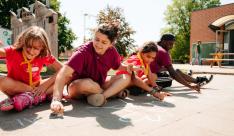 - Het speelplein is de ideale plek om nieuwe vrienden te maken.