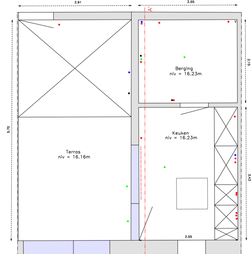 - Gelijkvloers met een vloeroppervlakte van 81 m² (inkomhal, wc, bureauruimte, living, keuken met berging en terras)