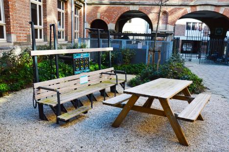 De beweegbank staat op het binnenplein van residentie Holleberg.