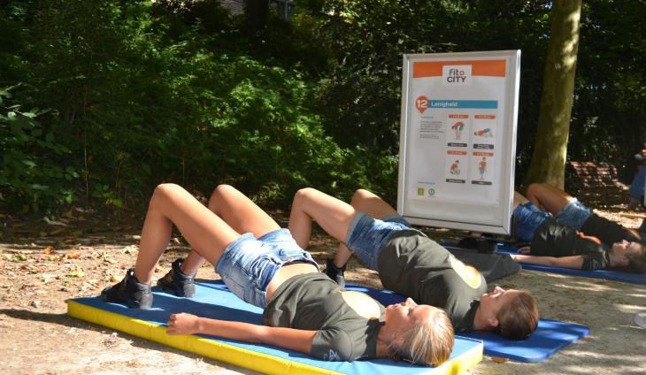 Parcours door het centrum van Leuven, met onderweg 12 plekken met oefeningen.