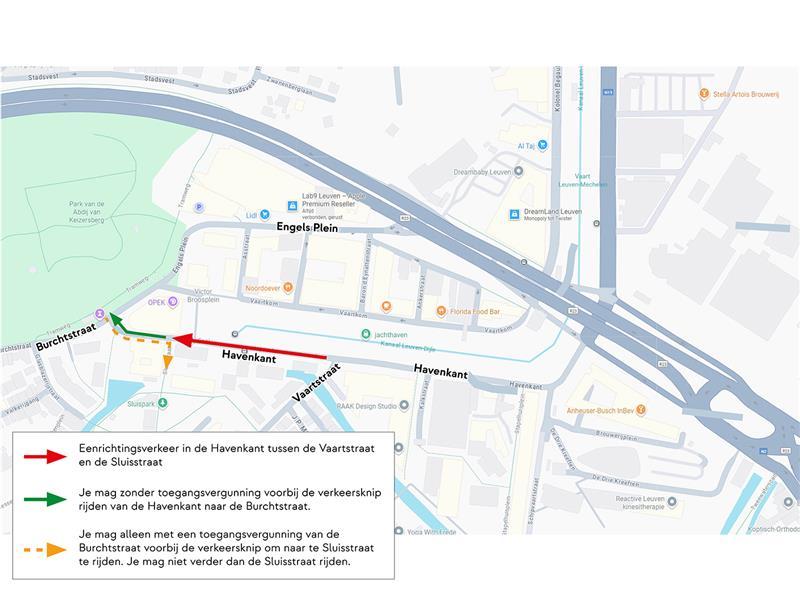 - Je mag zonder toegangsvergunning voorbij de verkeersknip rijden van de Havenkant naar de Burchtstraat. Niet omgekeerd.