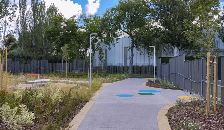 The most significant intervention is the removal of the perimeter fence that separated the school playground from Dehesa Boyal Park. This change integrates the park's greenery into the school area, creating a more verdant and inviting environment. By eliminating this barrier, children's connection with nature is strengthened, boosting biodiversity and promoting outdoor learning.
