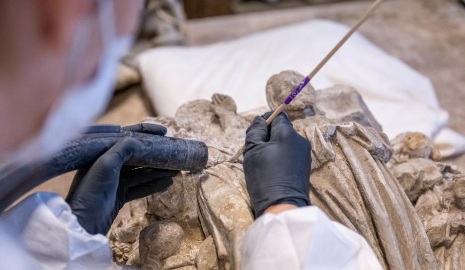 - A large number of facade statues have already been packed and cleaned in the attic of the Town Hall, under the supervision of M Leuven.