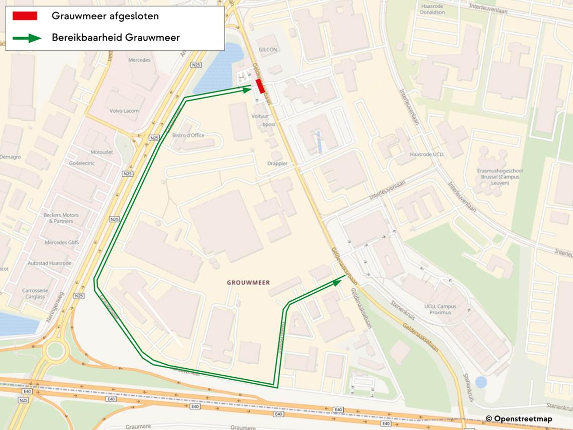 - Grauwmeer blijft bereikbaar door om te rijden via de Geldenaaksebaan en de Industrieweg.