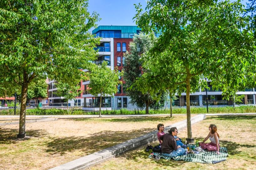 - Door in de stadswijk Tweewaters in de hoogte te bouwen, blijft 70 % van de ruimte onbebouwd. Dit park is een deel van die onbebouwde ruimte.