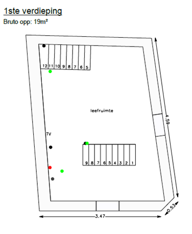 - Eerste verdieping: Leefruimte - 19 m²