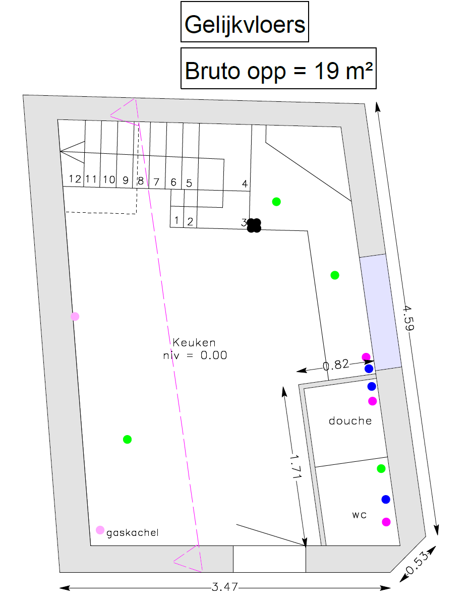 - De totale oppervlakte van het perceel is 19 m².