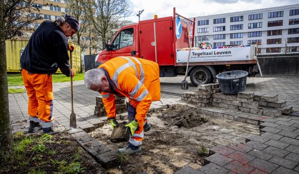 Met het project "Hier dringt het door!" vervangen we bestrating door groen, zodat er meer regenwater in de bodem kan dringen. Zo houden we de grondwatervoorraad op peil en beschermen we Leuven tegen overstromingen.
