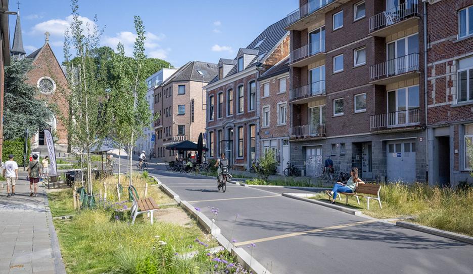 Hieronder vind je enkele voorbeelden van straten en pleinen die we opnieuw aanlegden met meer groen en minder asfalt en beton.