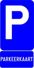 - Parkeerplaatsen aangeduid met blauw bord 'P' en onderbord 'Parkeerkaart'