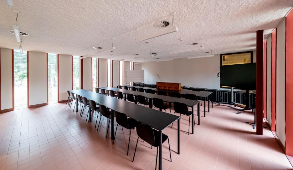 Deze zaal is geschikt voor lezingen, cursussen en vergaderingen.