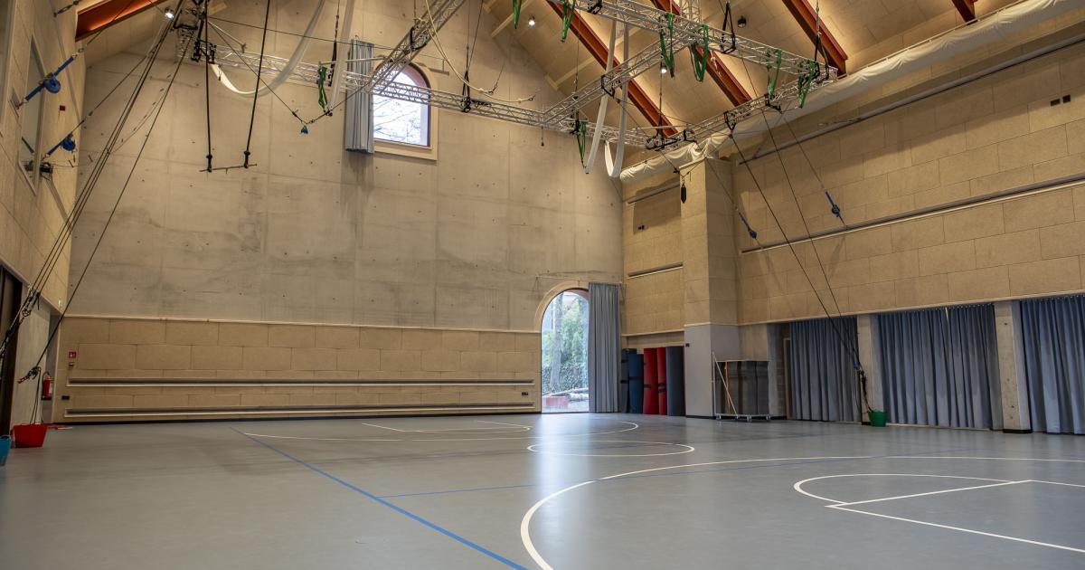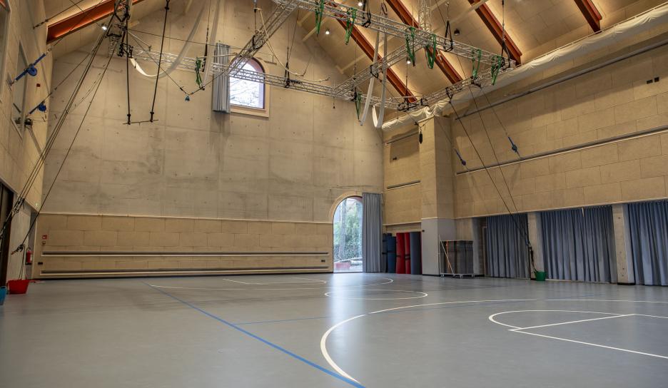 - Vaste belijning voor volleybal en basket (geen officiële afmetingen: 17 x 9 m)