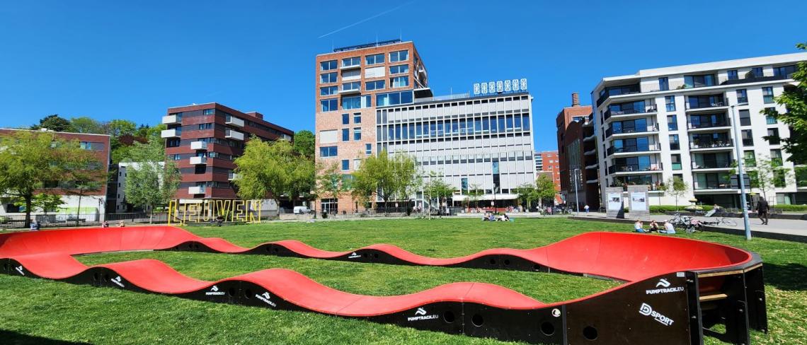 Stuntsteppers, loopfietsjes, BMX'ers, skaters en andere streetsporters kunnen zich uitleven op deze tijdelijke pumptrack. Wie durft?!
