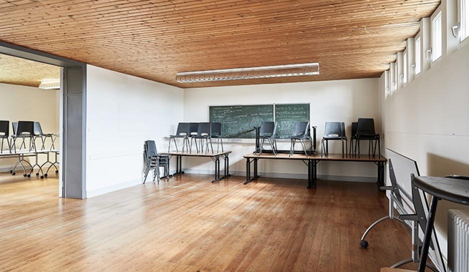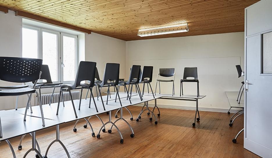 Deze zaal in de school is geschikt voor vergaderingen en cursussen.