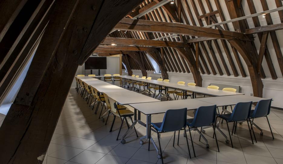 OpgeletVanaf 1 september 2025 starten de renovatiewerken. Je kan deze zaal dan nog huren, maar je kan hinder ondervinden (stof, lawaai, moeilijke toegang tot het gebouw). Onze excuses daarvoor.