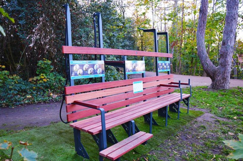 Aan de bank vind je een infopaneel met enkele eenvoudige oefeningen voor elk fitnesselement. Met de gratis app 'IPitup' kan je een individueel trainingsschema maken.