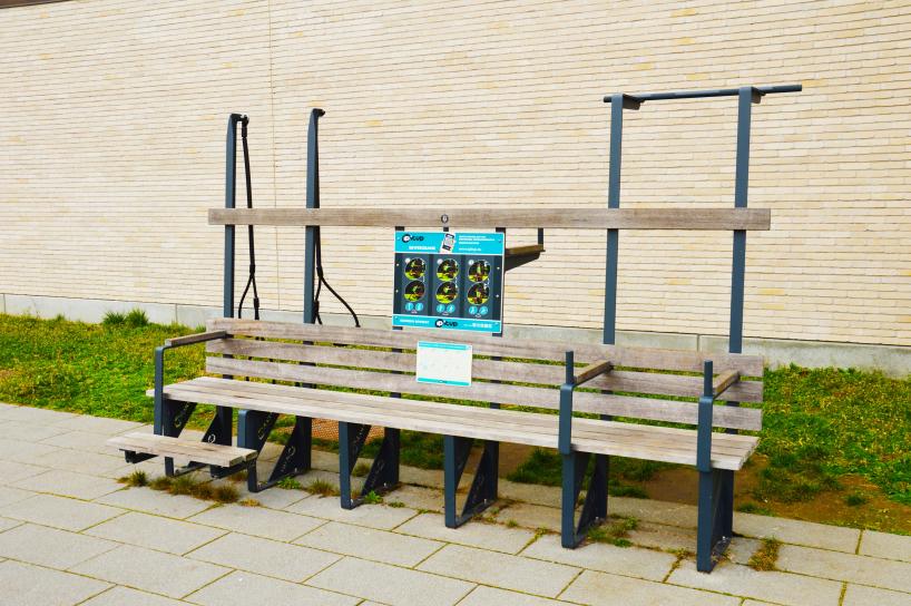 Aan de bank vind je een infopaneel met enkele eenvoudige oefeningen voor elk fitnesselement. Met de gratis app 'IPitup' kan je een individueel trainingsschema maken.