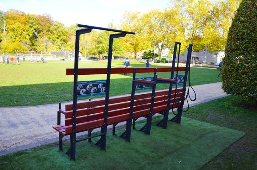 Aan de bank vind je een infopaneel met enkele eenvoudige oefeningen voor elk fitnesselement. Met de gratis app 'IPitup' kan je een individueel trainingsschema maken.