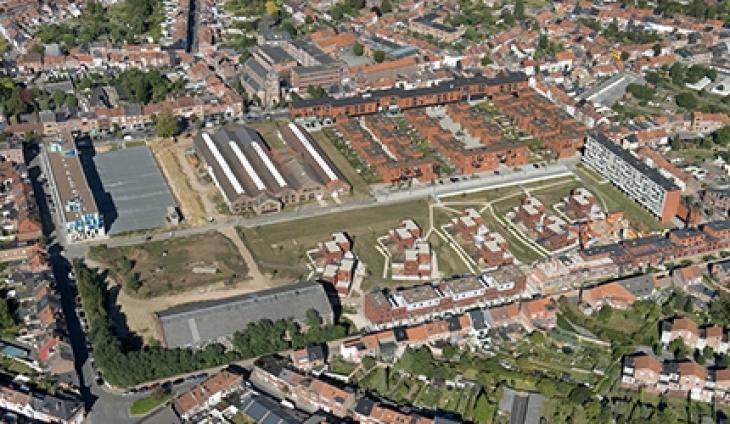 De vroegere ommuurde spoorwegwerkplaats langs de Diestsesteenweg.