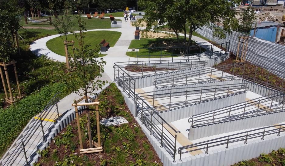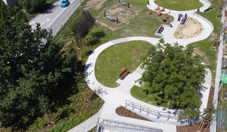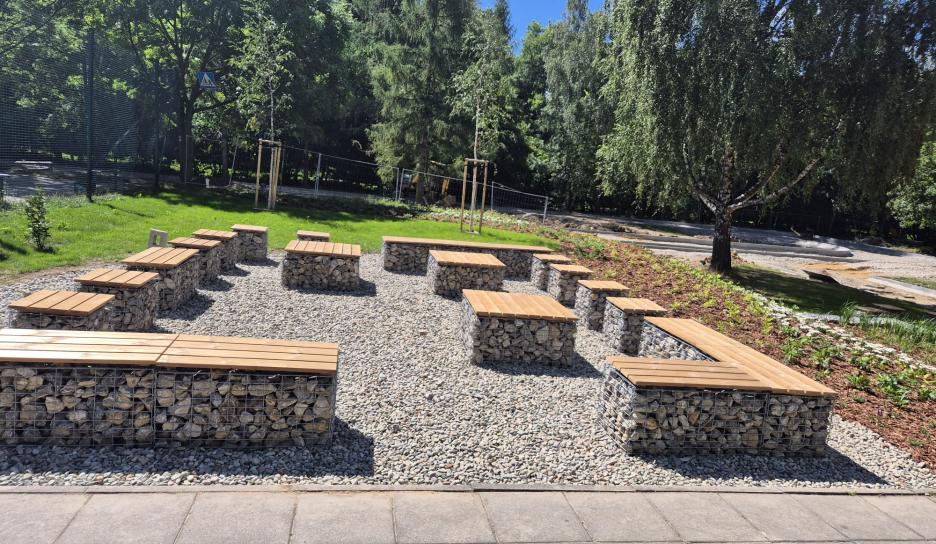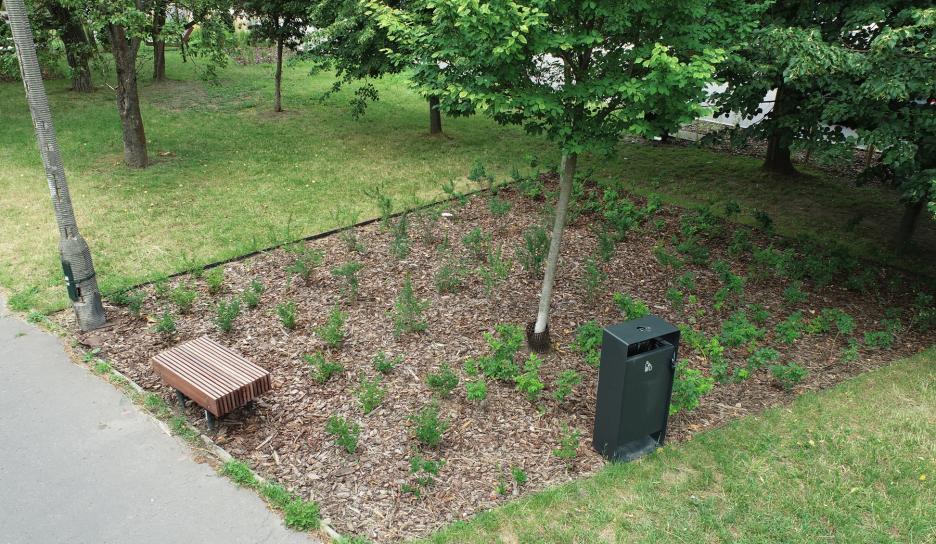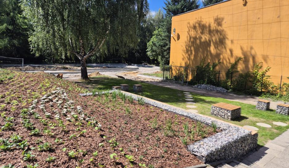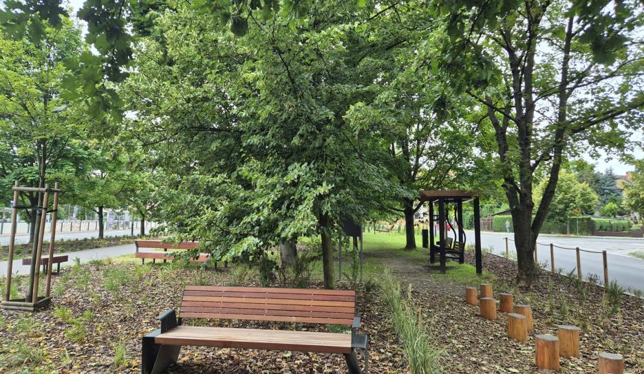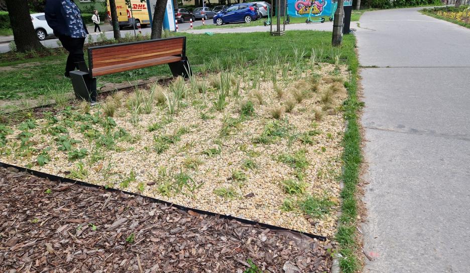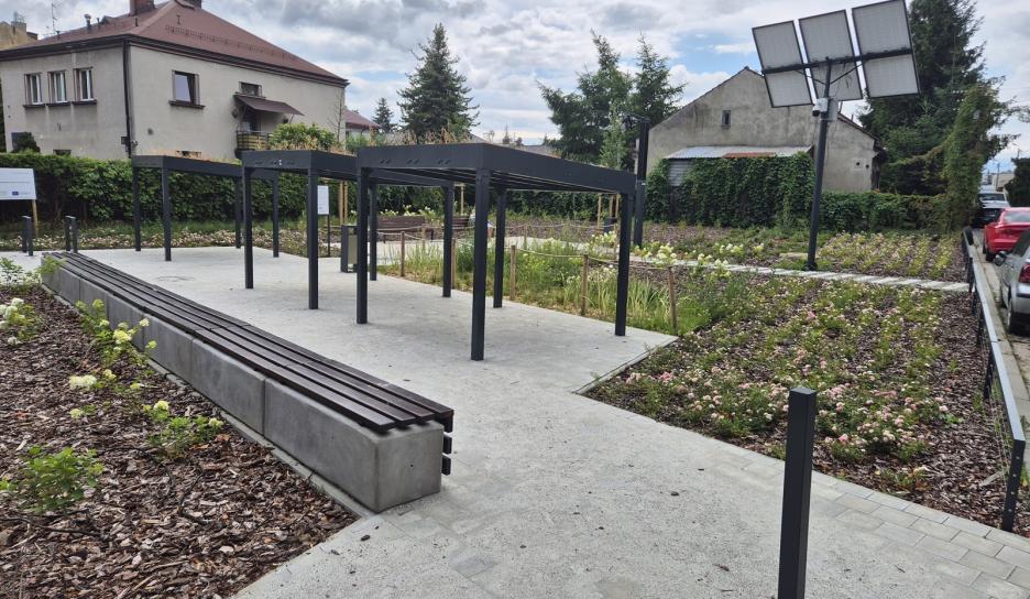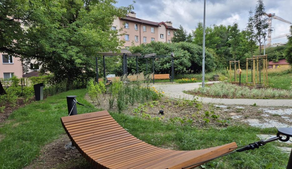 Between Witosa, Gołaśka, and Marcowa Streets, multiple solutions were implemented to support climate change adaptation and improve residents' quality of life. A public space was created featuring new alleys, small architectural elements, recreation area, pram ramp, rain gardens, and greenery that enhance the living environment. Rain gardens, designed as depressions, effectively capture rainwater from surrounding surfaces, retaining and gradually releasing it into the ground. They provide effective flood protection and contribute to improving the local microclimate.