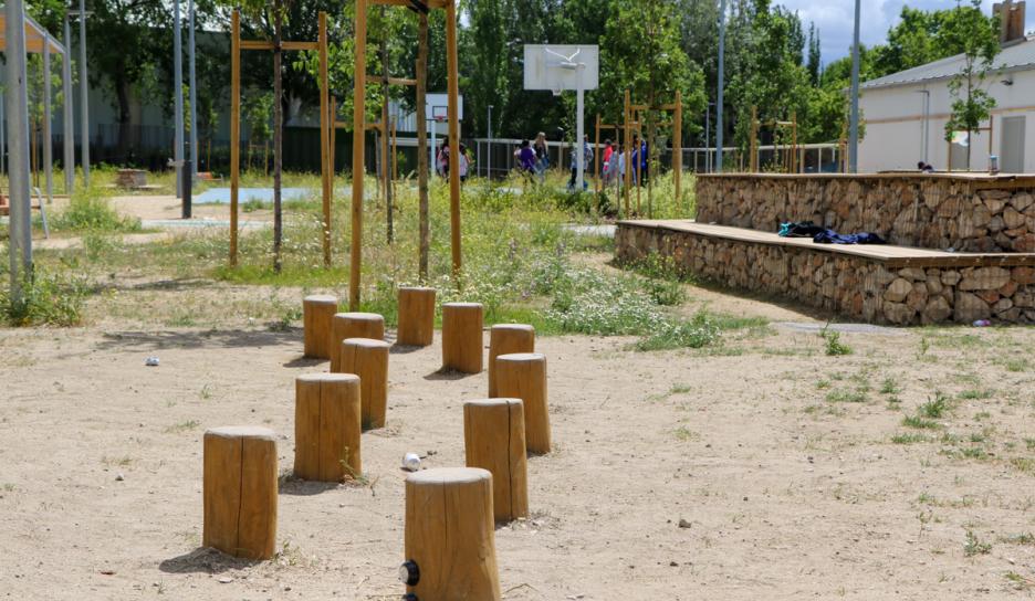The most significant intervention is the removal of the perimeter fence that separated the school playground from Dehesa Boyal Park. This change integrates the park's greenery into the school area, creating a more verdant and inviting environment. By eliminating this barrier, children's connection with nature is strengthened, boosting biodiversity and promoting outdoor learning.