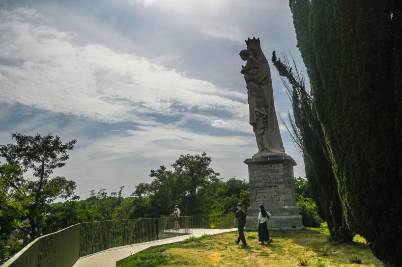 - De oude burchtmuur en het Mariabeeld zijn gerestaureerd. Boven is nu een uitkijkplek over de stad.