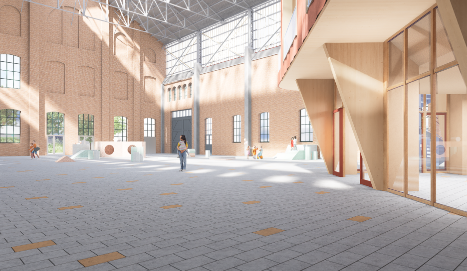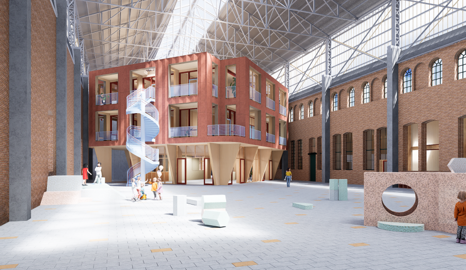 Hal 9 wordt een jeugdcentrum van de stad met kantoren, atelierruimten en overdekte speel- en sportruimte.