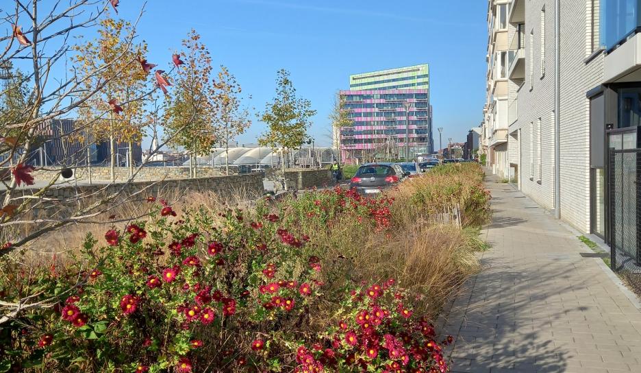 We passen natuurgebaseerde oplossingen (NBS) toe. We gebruiken dus de natuur om de effecten van klimaatverandering in de stad tegen te gaan of te verminderen. Deze oplossingen verbeteren de biodiversiteit en de milieukwaliteit en dragen zo bij aan economische ontwikkeling en sociaal welzijn.