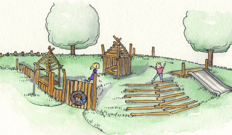 We verwijderen de oude speeltoestellen en vervangen ze door: