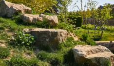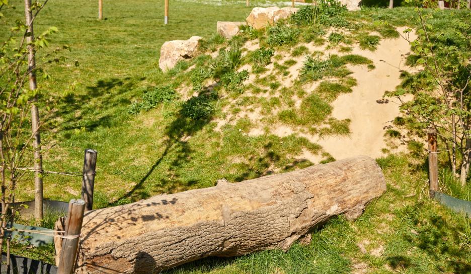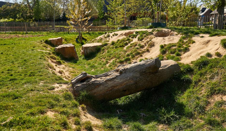 Natuurlijke speelelementen zoals heuvels, keien, boomstammen ...