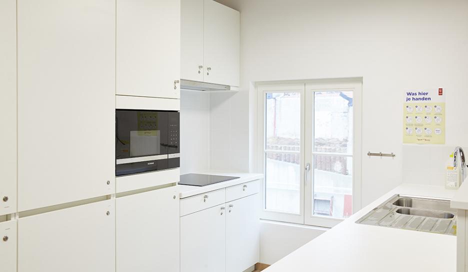 De keuken is in dezelfde ruimte, die moet je niet apart huren.