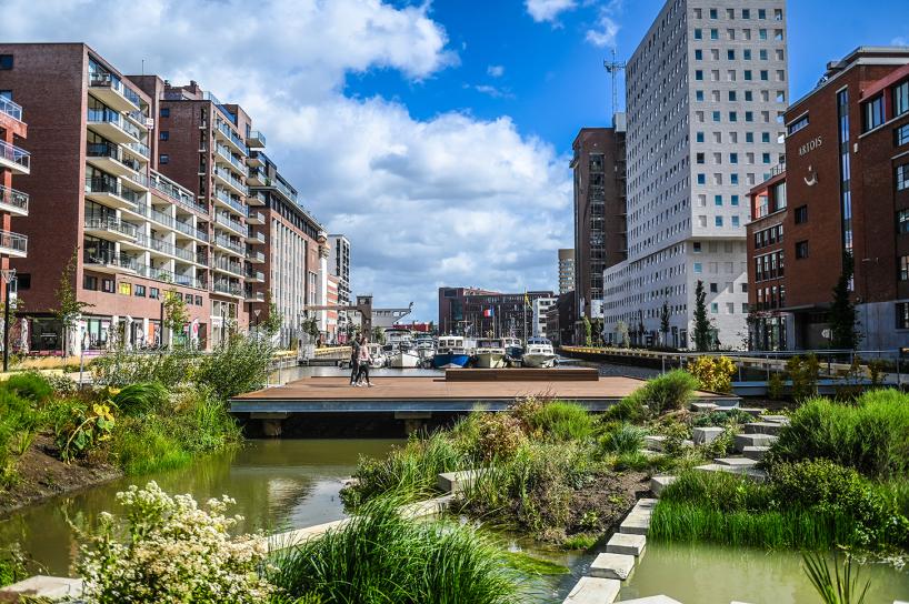 De oevers van de Vaartkom kregen een nieuwe inrichting met ontmoetingsplekken, veel groen, een watertuin en nieuwe wegen en fietspaden. Het is een plek waar je kan ontspannen en elkaar kan ontmoeten.