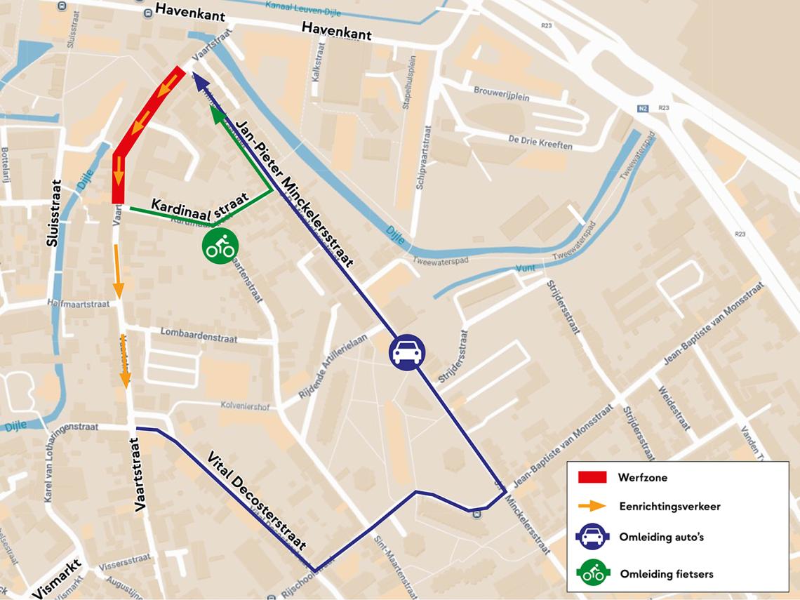 - In de Vaartstraat geldt eenrichtingsverkeer vanaf de Jan-Pieter Minckelersstraat tot aan de Kardinaalstraat.