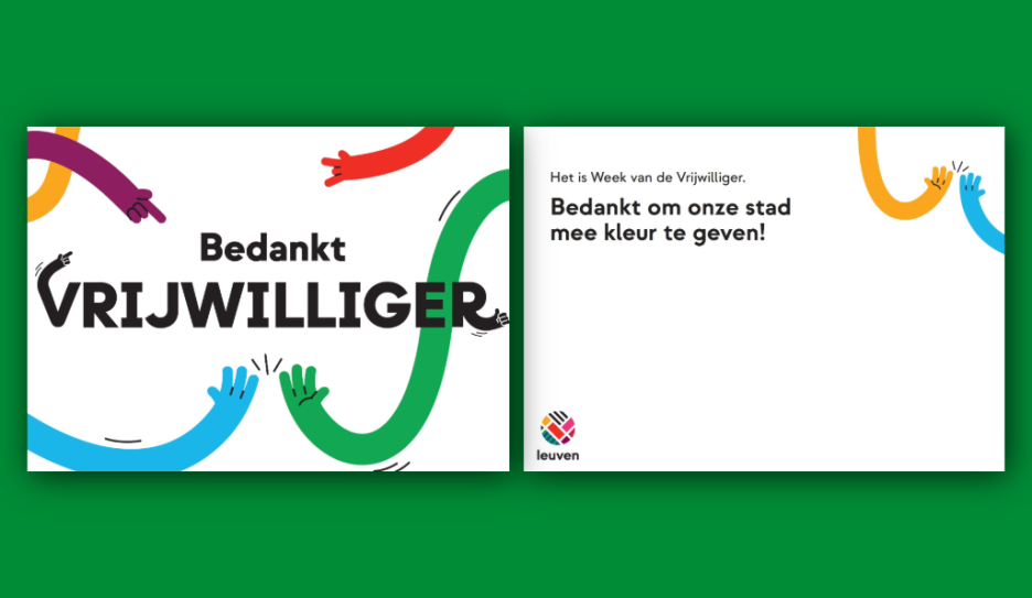 Voor alle Leuvense verenigingen en organisaties die met vrijwilligers werken. De postkaarten zijn alleen bedoeld voor vrijwilligers, niet voor leden of deelnemers.