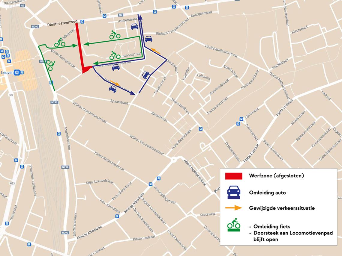 - De Werkhuizenstraat is afgesloten tussen de Diestsesteenweg en Ernest Solvaystraat.