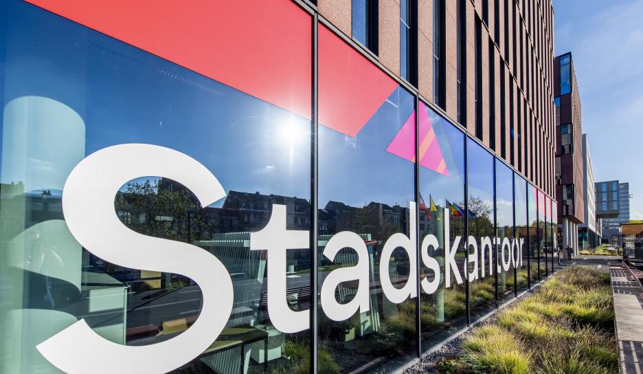 De meeste stadsdiensten werken in het stadskantoor, vlak bij het station van Leuven.